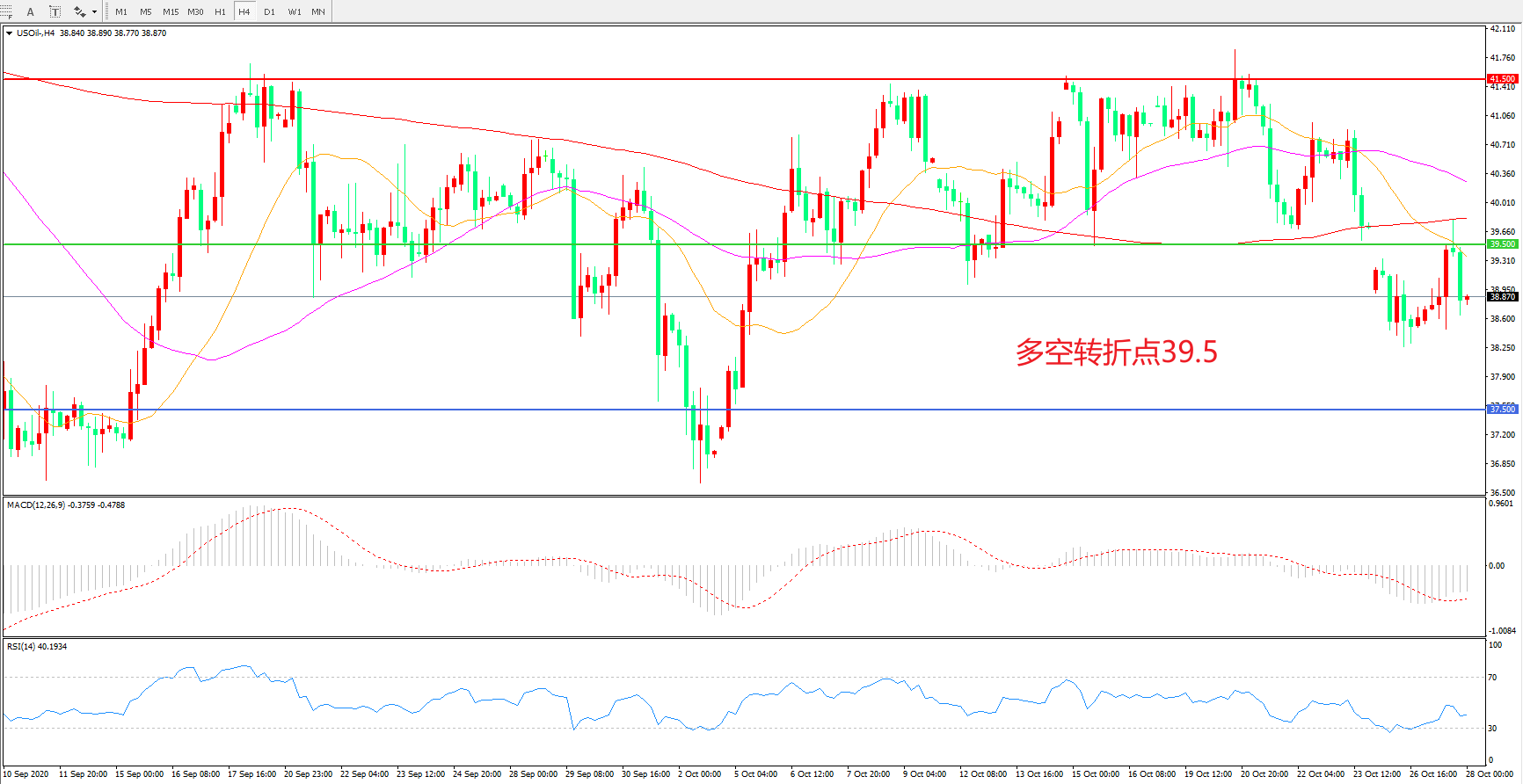 周一(10月26日),得益于热带风暴干扰美国墨西哥湾能源生产,油价扭转了连续两日下跌的势头,但由于API数据意外增加增加458万桶,美国WTI原油快速跳水,收报38.87美元/桶,晚间EIA数据如果表现不佳,有可能引发油价新一轮的下跌,务必重点关注。