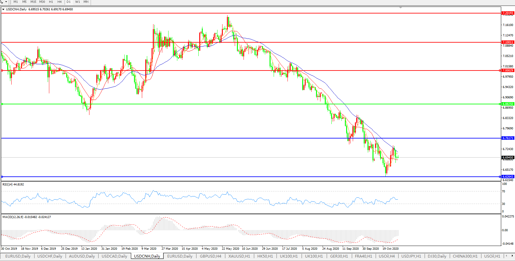 人民币兑美元即期周五收盘续升百点,但升幅较午盘明显收窄,中间价暂离两周低点;交易员称,美指早盘小幅回落,人民币市场情绪较好,早盘汇价短暂升破6.68关口,午后A股下跌美指回升,人民币也回吐大部分早前涨幅;他们并指出,欧洲重启封锁措施,加剧市场对欧洲经济复苏担忧,而欧洲央行暗示进一步宽松政策或打压欧元,这对美元将形成支撑;另外离/在岸一周期美元/人民币期权隐含波动率维持在高位,凸显市场对美国大选结果持谨慎态度; 全球汇市方面,美元周五涨势暂歇,在此同时欧元兑美元在四周低点附近徘徊,此前欧洲央行暗示年底前将进一步放宽货币政策;围绕下周二美国总统大选的不确定性和新冠疫情担忧继续笼罩市场;SMBC日兴证券首席汇市策略师Makoto Noji称,“鉴于过去两天投资者基本上是在买入美元兑欧元,因此趋势是在大选之前卖出美元”