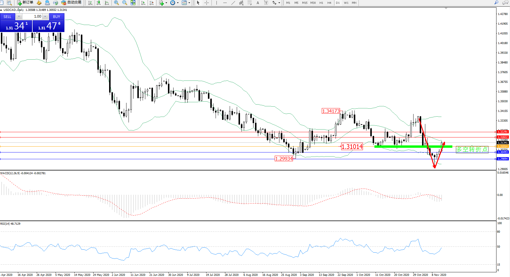 交易策略:1.31014上方看涨,目标1.31822、1.32291