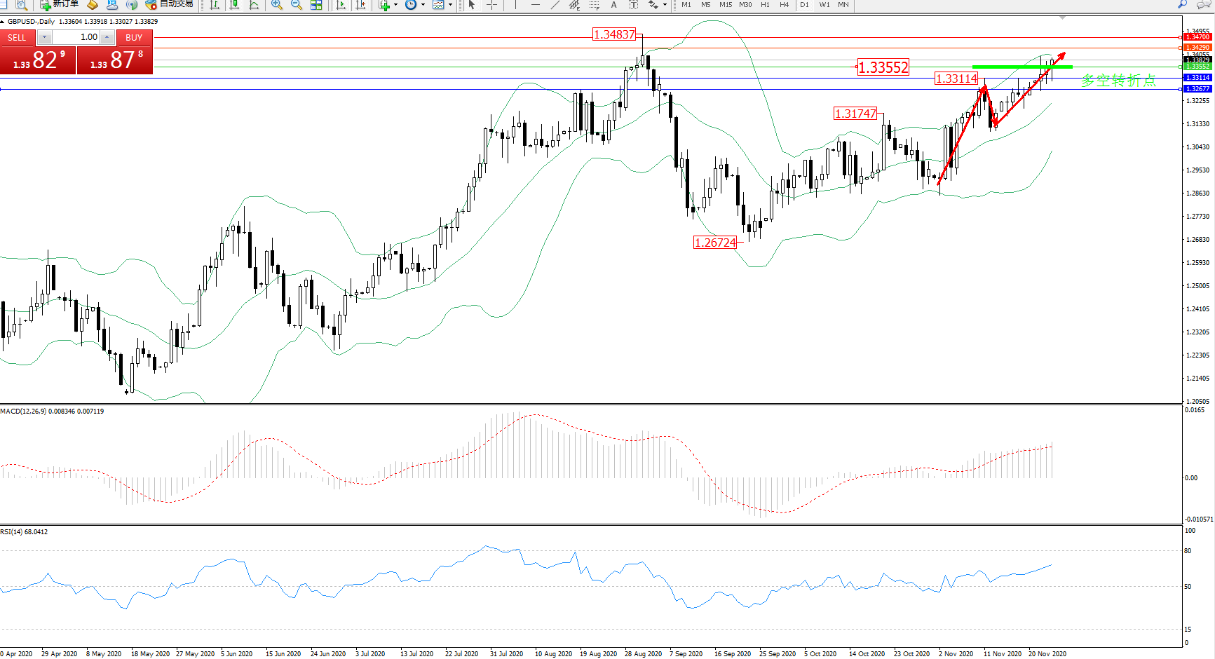 交易策略:1.33552上方看涨,目标1.34290、1.34700