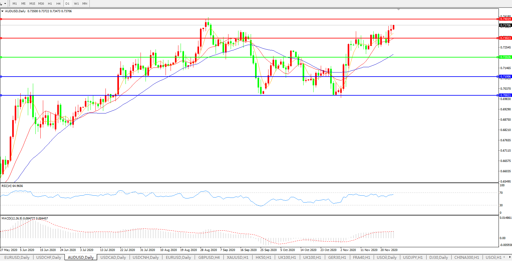 交易策略:0.7200上方看涨,目标0.7300、0.7400