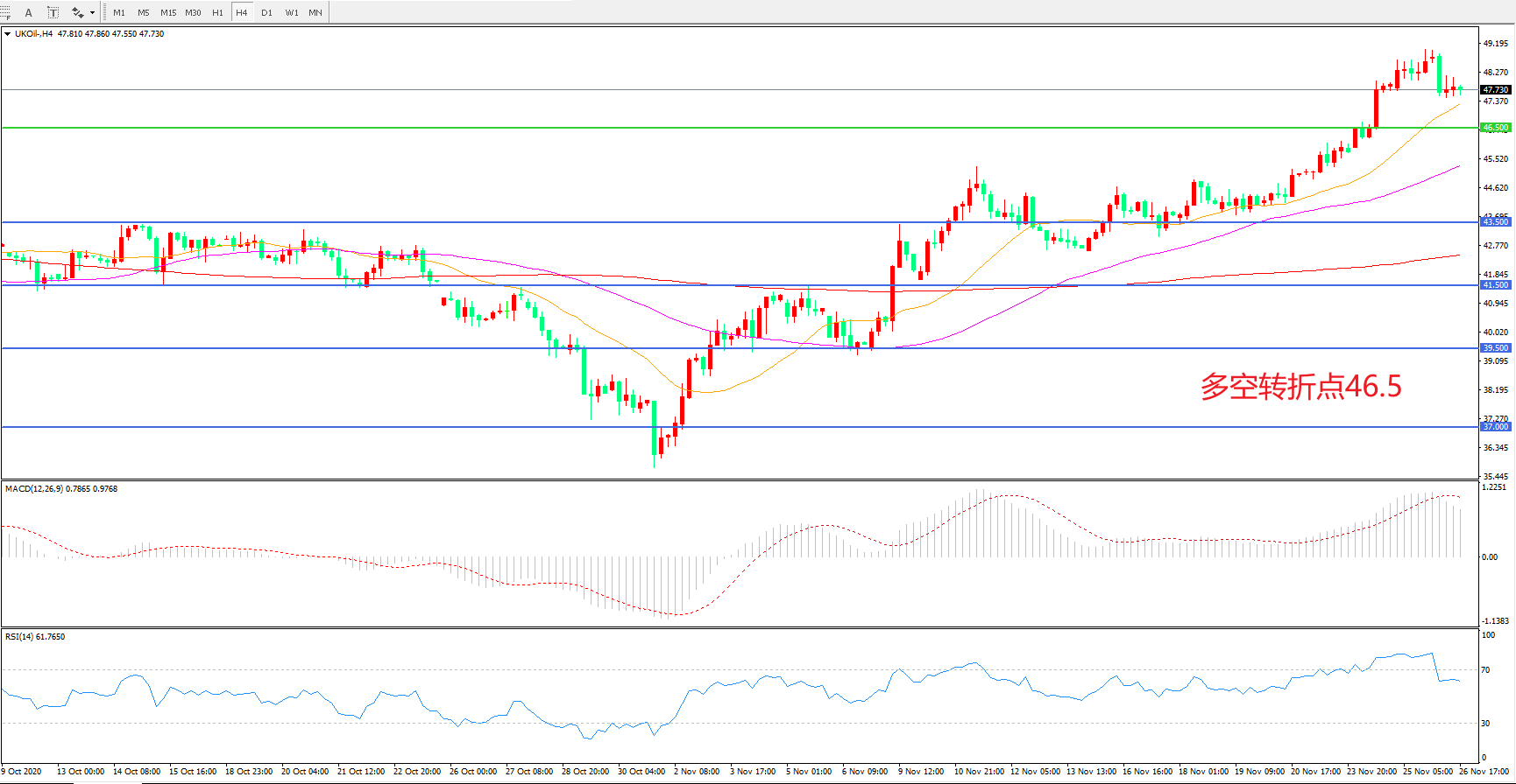 交易策略: 在46.50之上看涨,目标50.00 53.00