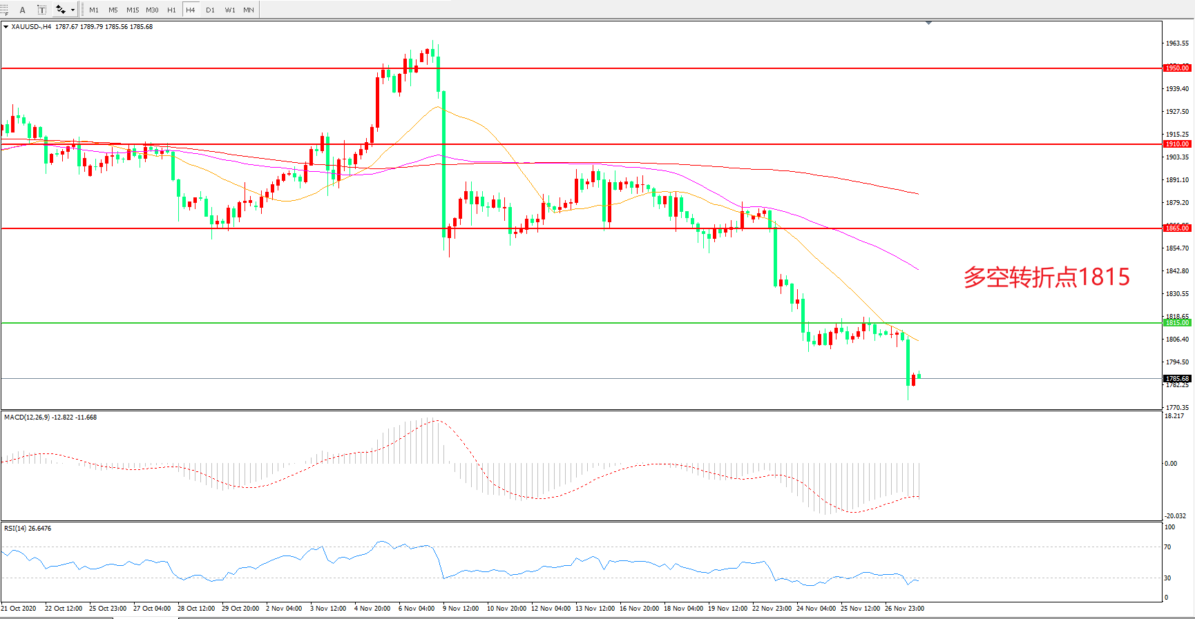 交易策略:在1815.00之下看跌,目标1766.00   1705.00