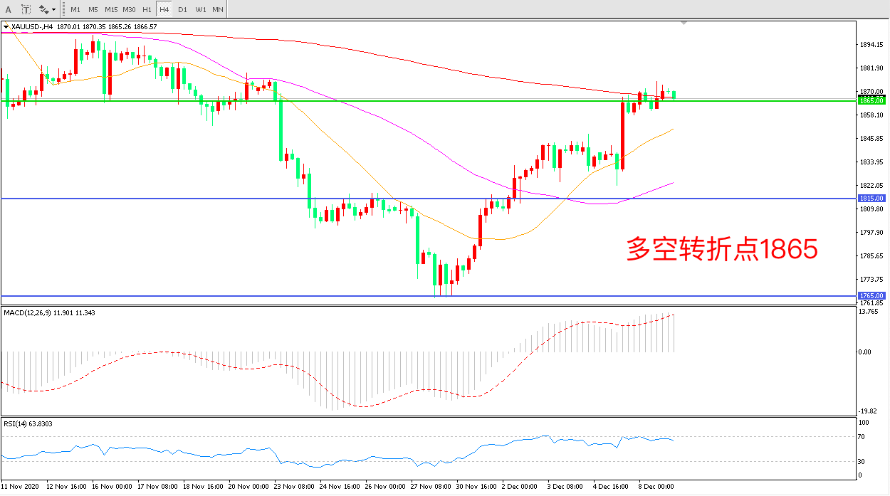 综合各方面因素判断,市场仍然看涨,尤其是在收复关键点位1865美元之后,波动性更高,买盘更踊跃,中长线投机交易者如果前期有多单可以继续持有,中短线投资者可以轻仓尽量以做多为主进行交易。