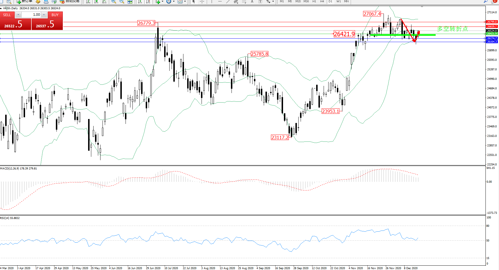 香港恒生指数12月16日(周三)收盘上涨253.00点,涨幅0.97%,报26460.29点;港股主要指数均收涨,恒指全天高位震荡,恒生科技指数涨0.64%。恒生科技股多数上涨,阿里、腾讯均涨2%;半导体板块延续昨日跌势,午后开盘曾直线下挫,中芯国际收跌5%;光伏新能源板块高开低走,个股全线回调,福莱特玻璃大幅收跌11.27%,早盘一度涨超6%。蓝月亮上市首日收涨13%,市值达855亿港元。今日南下资金净流入19.91亿港元,大市成交额为1290.39亿港元。据港媒,香港特区政府卫生署卫生防护中心12月16日下午表示,香港新增82例新冠肺炎确诊病例,其中79例为本地病例,35例源头不明。由于不断反复的新冠疫情,香港经济受到持续的负面影响,这也影响到大学应届毕业生的就业情况。香港《南华早报》15日援引总部位于香港的求职招聘网站JobsDB的数据称,今年香港约2万名大学毕业生的起薪面临5年来最大降幅,招聘职位也相比2019年减少近1/4,就业形势黯淡。