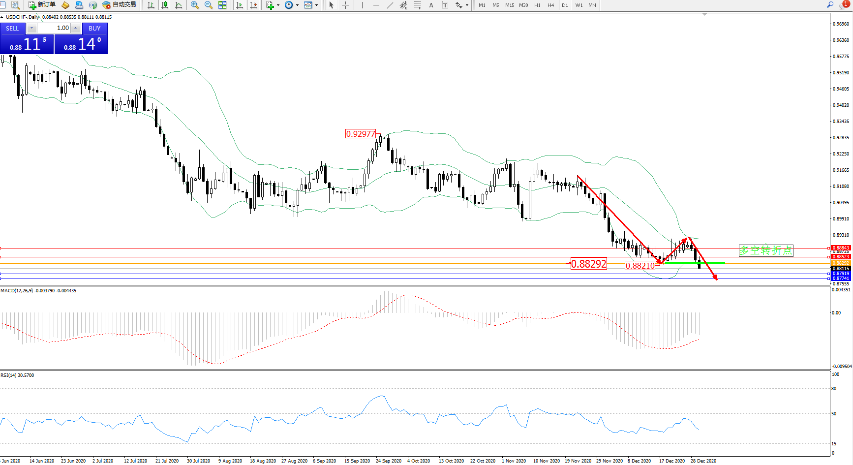 交易策略:0.88292下方看跌,目标0.87919、0.87741