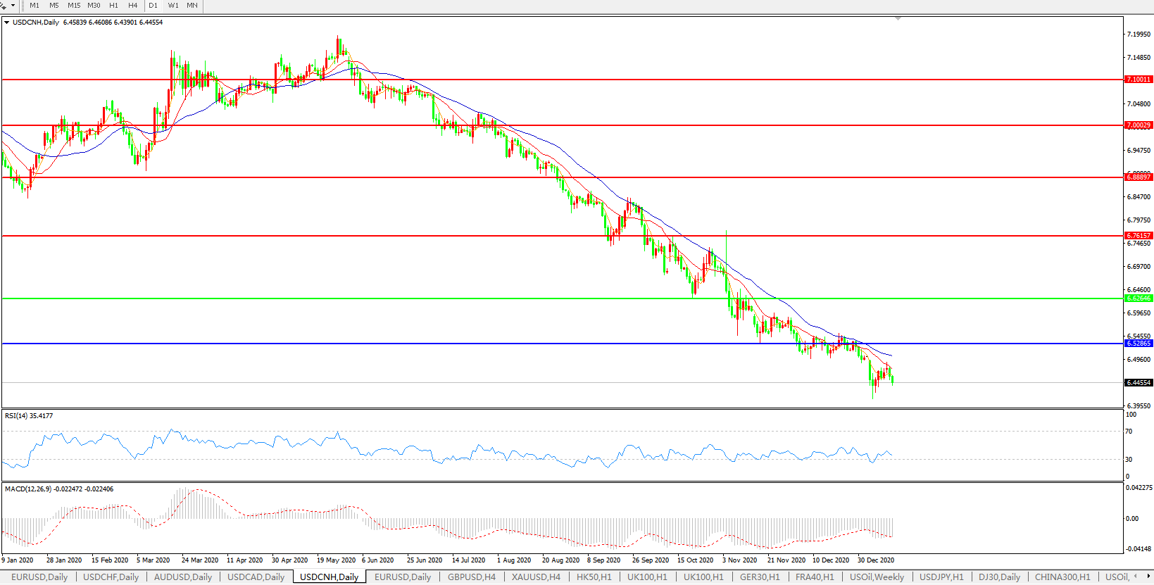 美元兑人民币USDCNH    日线图: