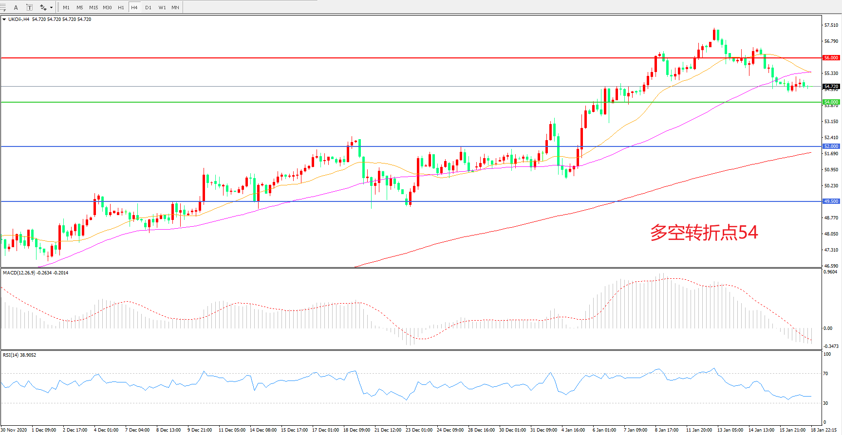 交易策略:  在54.00之上看涨,目标56.00      60.00