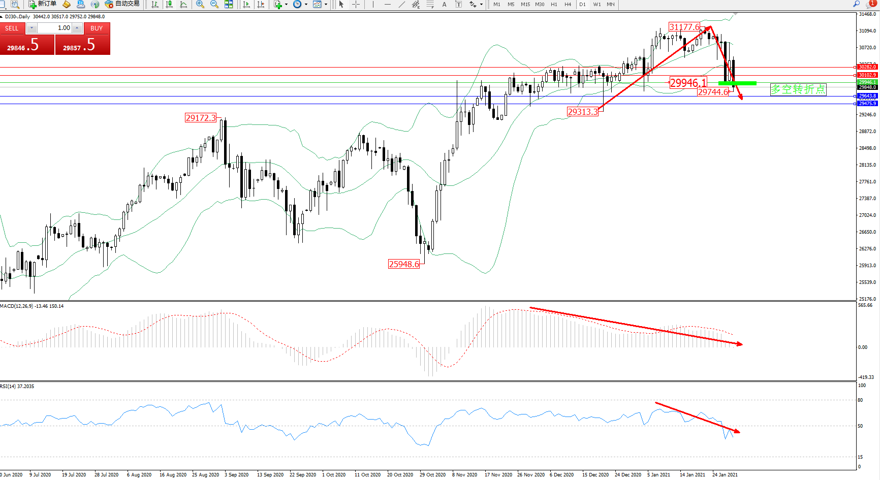 多空转折点:29946