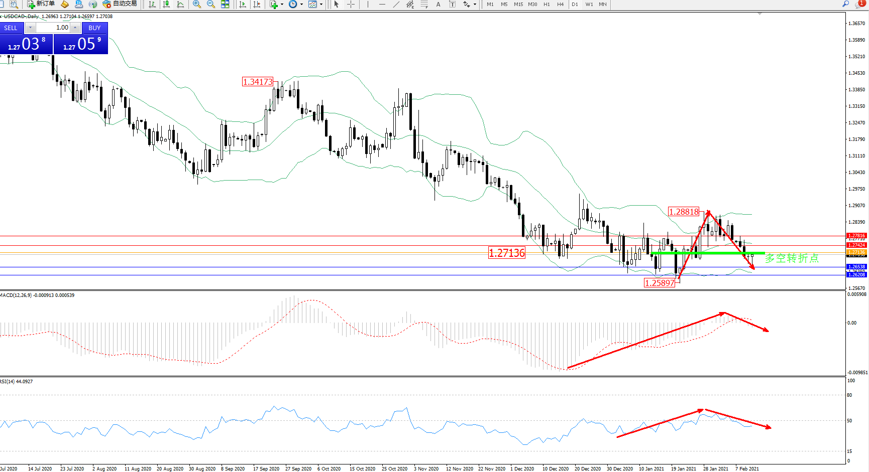 交易策略:1.27136下方看跌,目标1.26538、1.26208