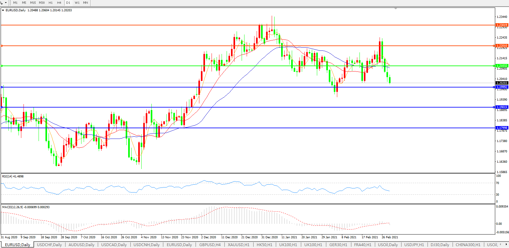 欧元兑美元下跌0.22%至1.2049;触及2月17日以来最低;由于欧洲增长预期落后,欧元跑输。欧洲央行行长拉加德周一表示,在企业和家庭努力应对疫情引发的衰退之际,央行将防止借款成本过早上升。欧洲央行管委维勒鲁瓦表示,必须应对债券收益率的任何不合理上涨。交易员称,欧元跌势因杠杆买盘而放缓,1.2020-1.2030附近有更多买盘。Schlossberg指出,每个人都在等待欧洲迎头赶上,无论是在疫苗接种方面,还是在刺激举措方面。当欧洲做到这一点时,就补上了真正推动全球经济增长的最后一块拼图。