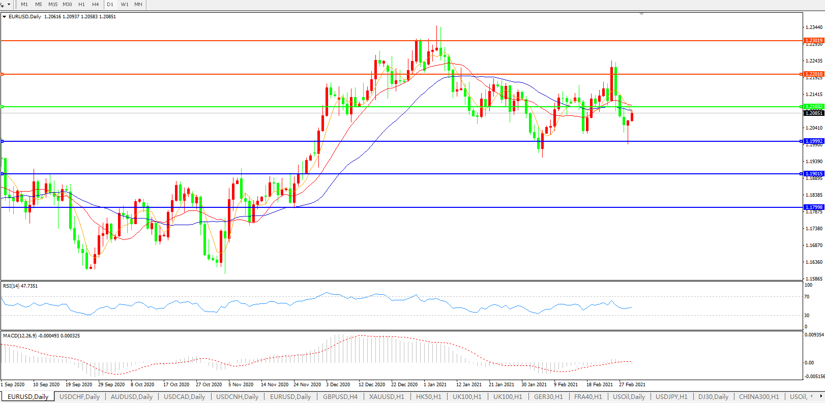 交易策略:1.2100下方看跌,目标1.2000、1.1900