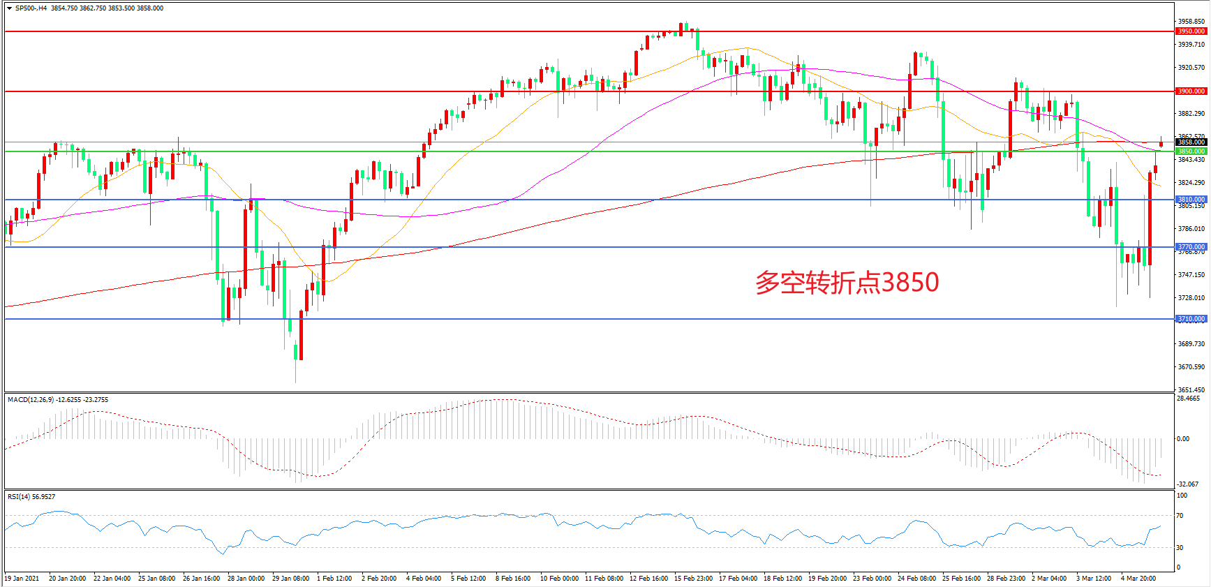 多空转折点:3850.00