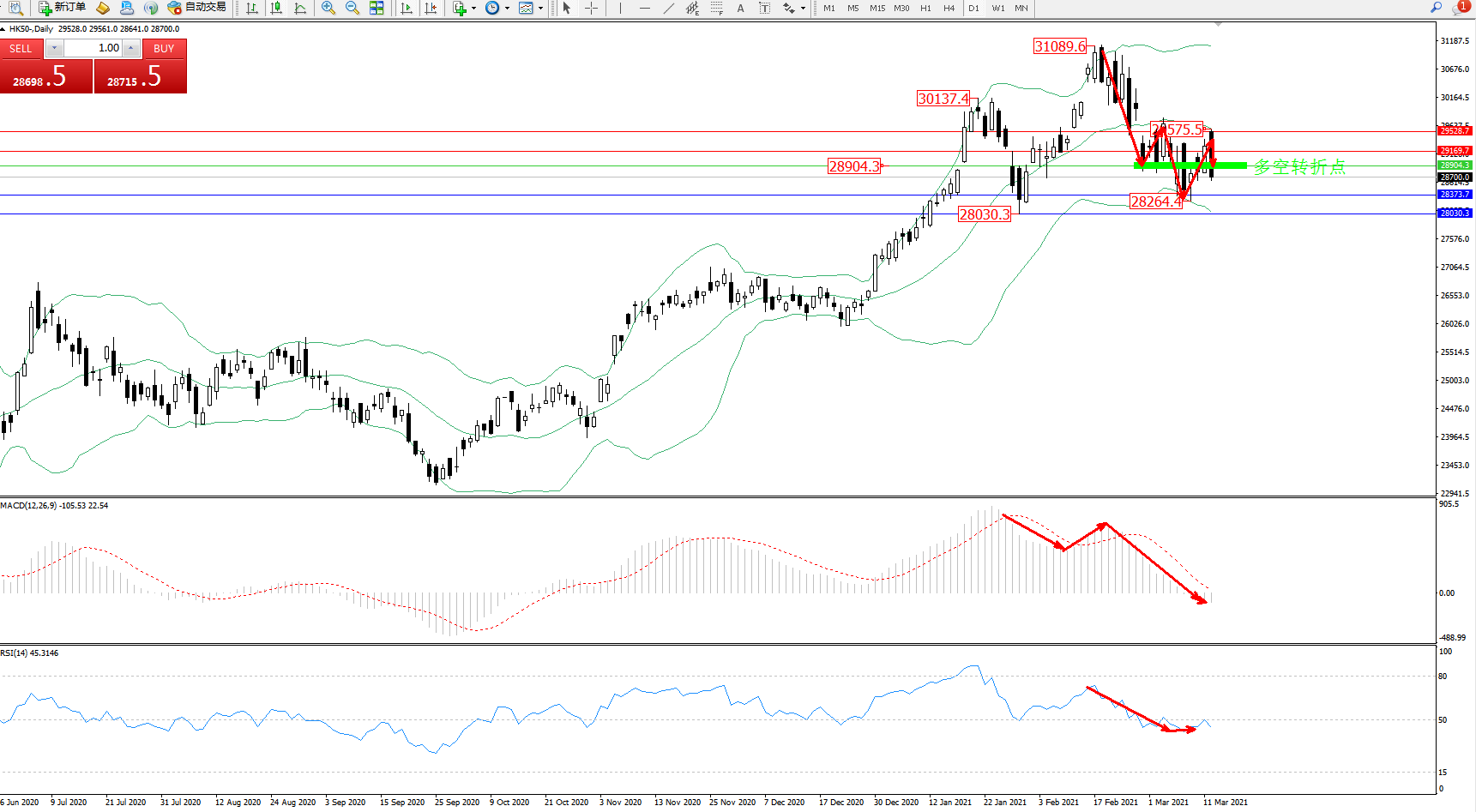 香港恒生指数3月12日(周五)收盘下跌645.89点,跌幅2.2%,报28739.72点;港股高开低走,主要指数均呈单边下跌行情。因十年期美债收益率突破1.6%,尾盘港股跌幅急剧扩大,大型科技股腾讯尾盘竞价一度下挫至超7%收跌4.4%,拖累大市走低,恒生科技指数跌2.13%报8456点。市场连续几日的反弹行情,再次遭到暴击,由此可见市场情绪依旧脆弱。今日南下资金逆势净流入48.34亿港元,大市成交额较昨日微幅放量至2254港元。南下资金今日净买入港股32.05亿港元,全周净卖出港股186.53亿港元。小米集团-W、腾讯控股、建设银行净买入额位列前三,分别获净买入30.62亿港元、4.73亿港元、2.87亿港元。净卖出前三个股为美团-W、保利协鑫能源、中国联通,分别遭净卖出4.22亿港元、1.69亿港元、1.33亿港元。香港特区政府卫生署卫生防护中心今日介绍,截至当日0时,香港新增60例新冠肺炎确诊病例,包括本地感染病例54例、境外输入病例6例。本地感染病例中5例未确认感染源头。截至目前,香港累计报告新冠肺炎确诊病例11211例。