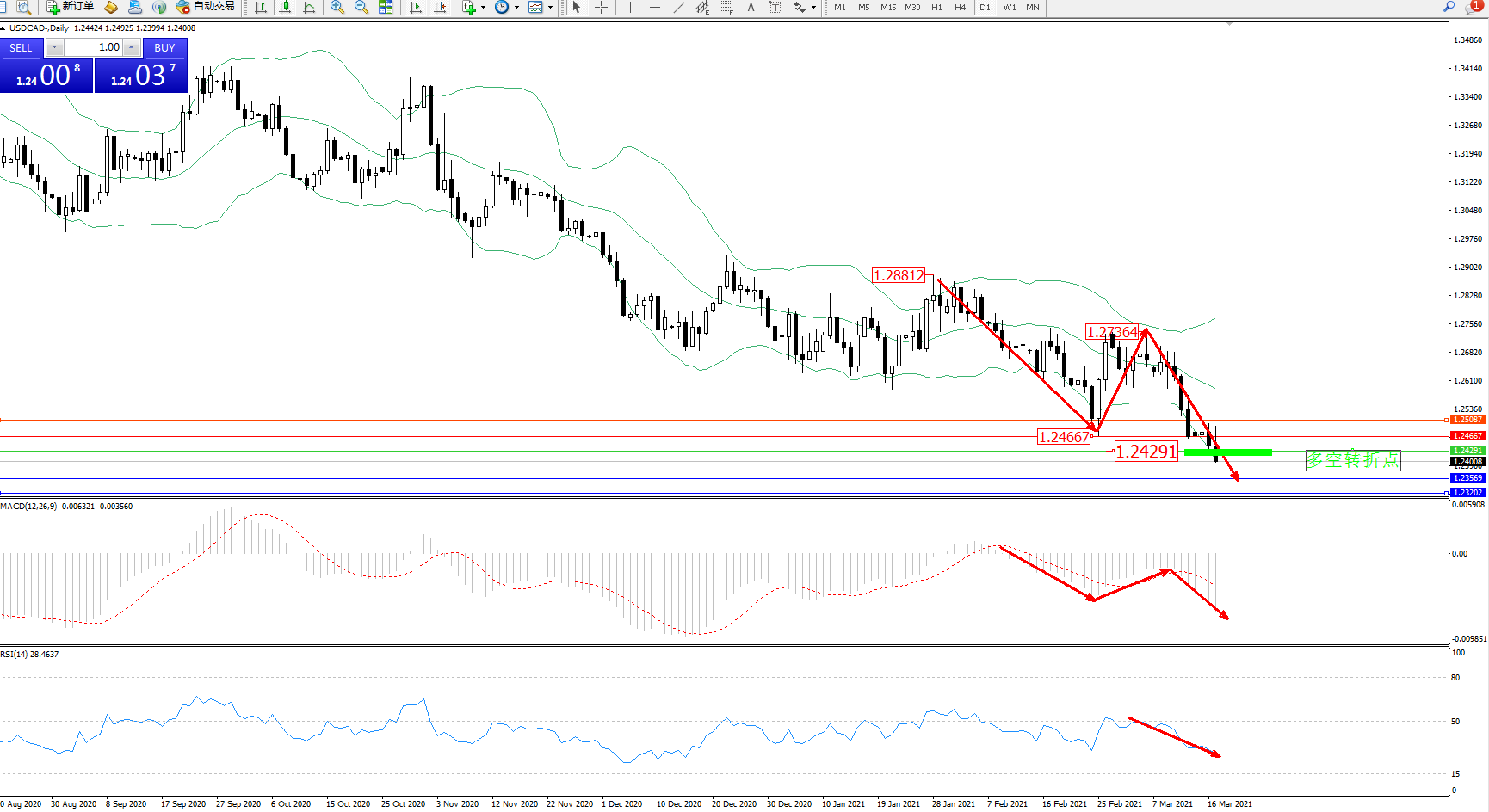 交易策略:1.24291下方看跌,目标1.23569、1.23202