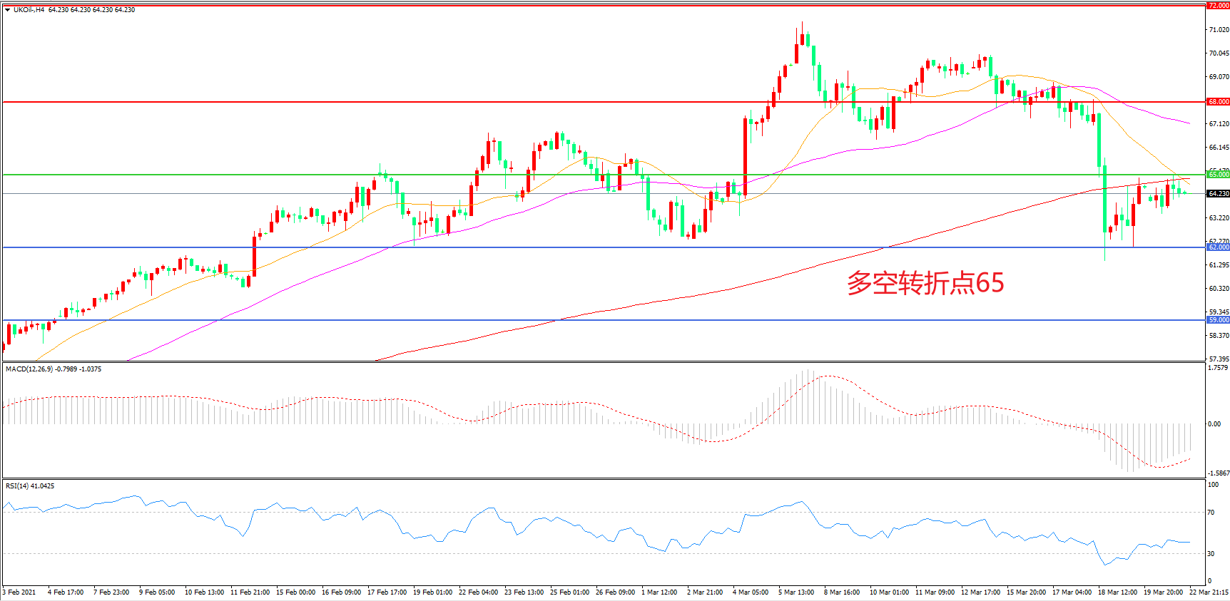 交易策略:在65.00之下看跌,目标62.00    59.00