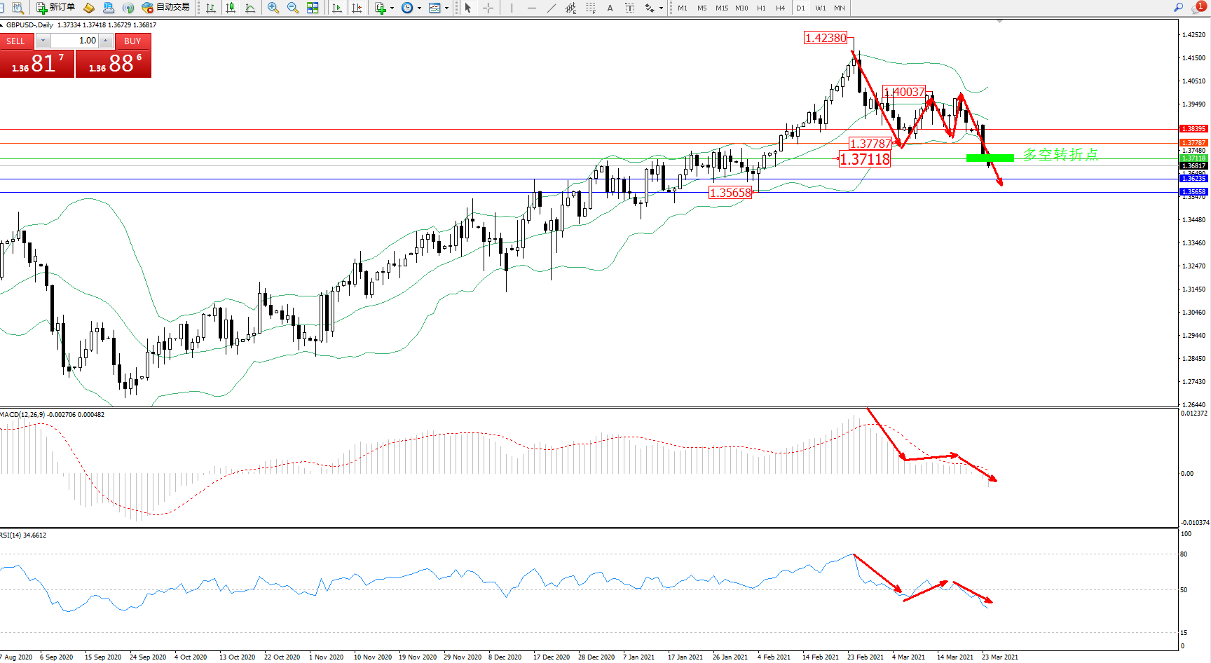 交易策略:1.37118下方看跌,目标1.36235、1.35658