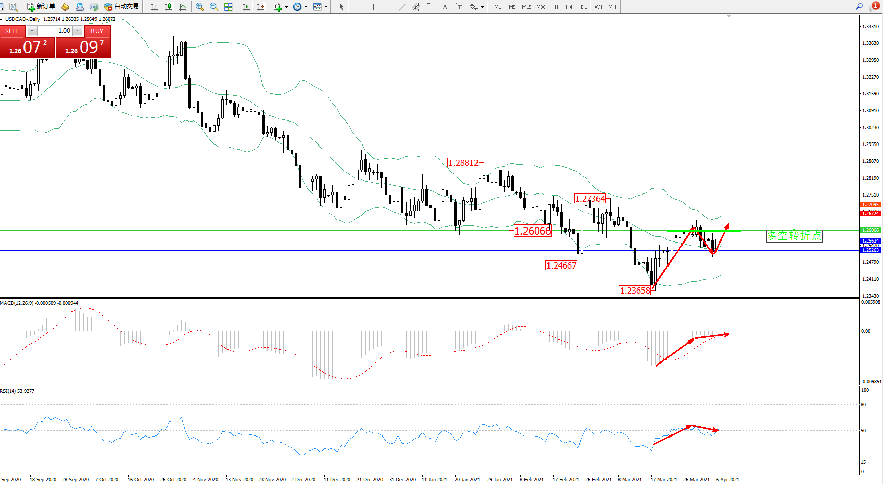 美元兑加元处于1.26063附近持续震荡,日内全球交投情绪仍略微偏好避险,令商品系货币承压;而与此同时,美债收益率回升也带动美元指数反弹,这和隔夜以来油价经历反弹后再度疲弱的走势一同,令加元汇价重新走弱;美元相对商品系货币的升幅仍在相当程度上受限,因美联储日内稍后将发布3月会议纪要,市场情绪仍然谨慎,而在能够有效突破当前在1.2643处的60日均线持续压制之前,美元兑加元的长期下行趋势也难以得到根本性扭转。国际货币基金组织(IMF)在三个月内第二次上调了对全球经济增长的预测,同时警告称,不平等现象加剧,发达经济体与欠发达经济体之间也出现分化。IMF在周二发布的《世界经济展望》中表示,今年全球经济将增长6%,高于1月份估计的5.5%。这将是四十年来全球经济的最快增速,相比之下去年全球经济萎缩3.3%,是自大萧条以来和平时期最严重的经济下滑。