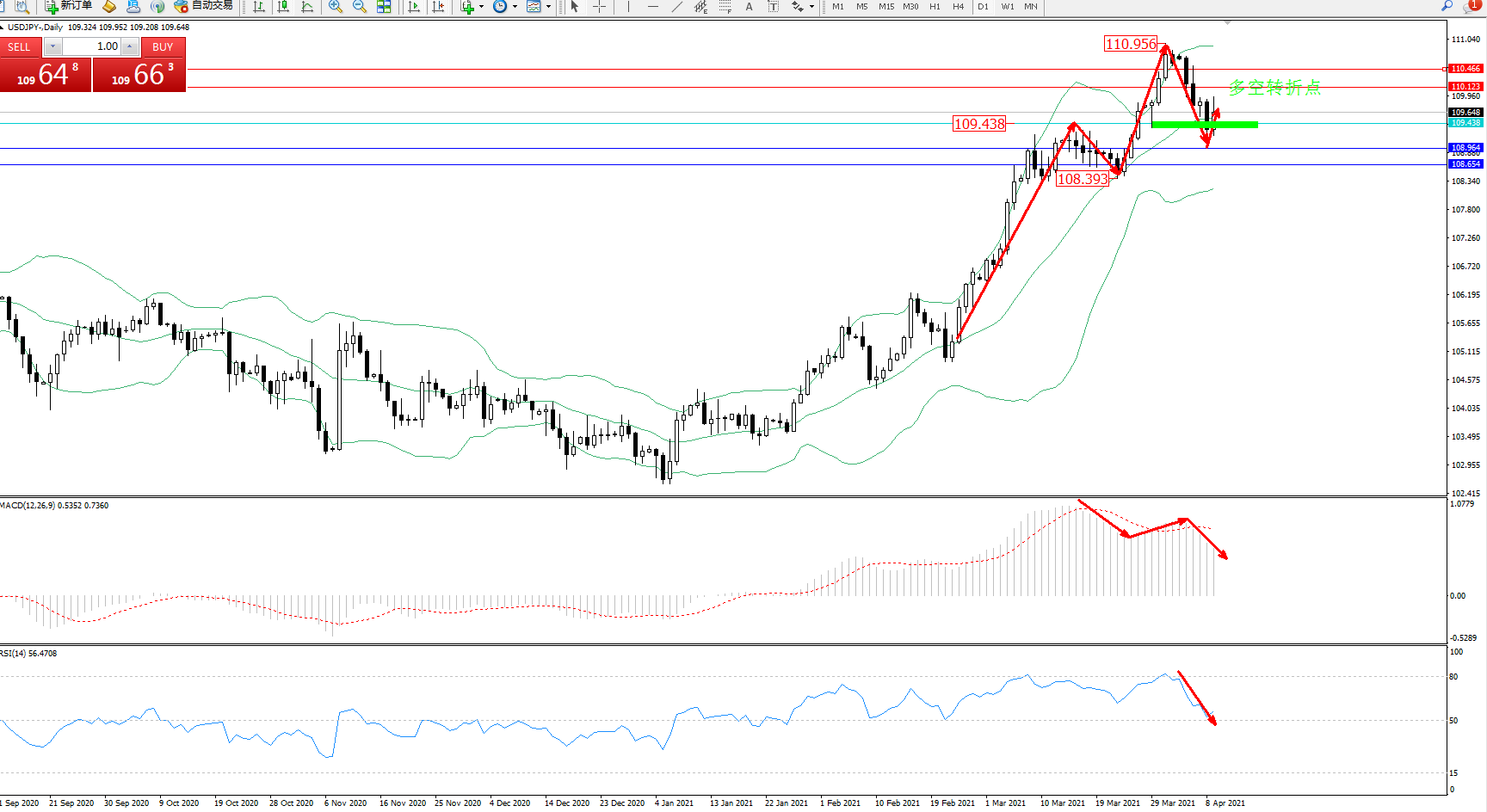 技术点评:多头动力延续布林带指标中上轨区间通道持续震荡上扬,高位抵达110.956位置遇阻回撤,跌破布林带指标中轨附近节点后维持宽幅震荡,布林带指标呈张口走势后开始缓慢收口,关注中轨附近节点,MACD指标处于多头区域高位震荡回撤,RSI指标高位持续回撤下行即将触及0轴线附近节点;