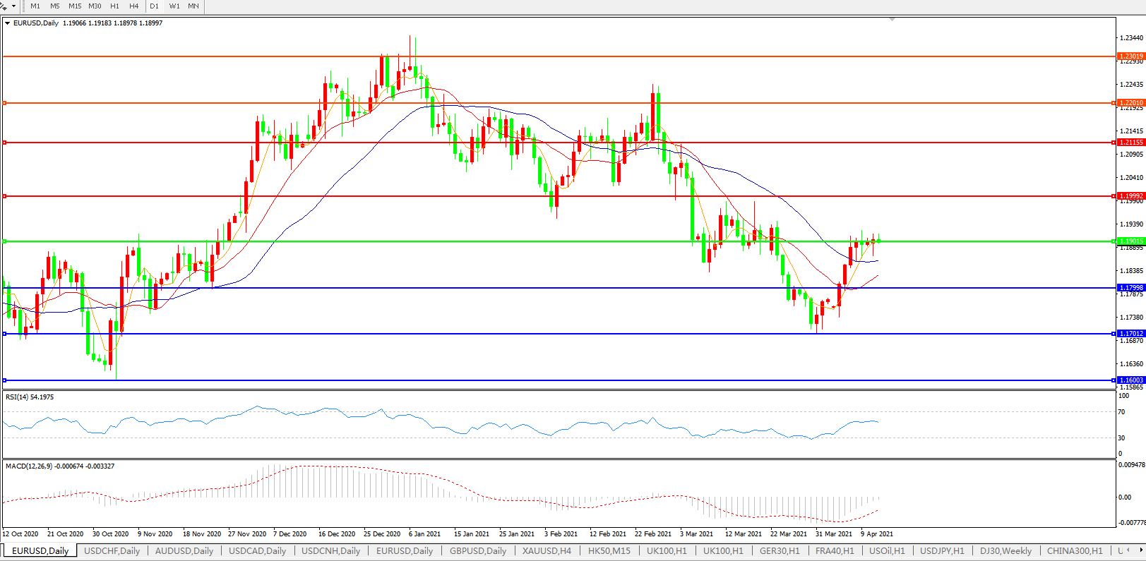 交易策略:1.1900上方看涨,目标1.2000、1.2100