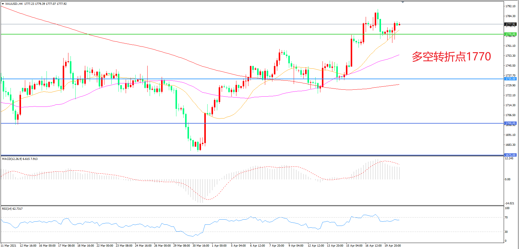 交易策略:在1735.00之上看涨,目标1770.00 1800.00