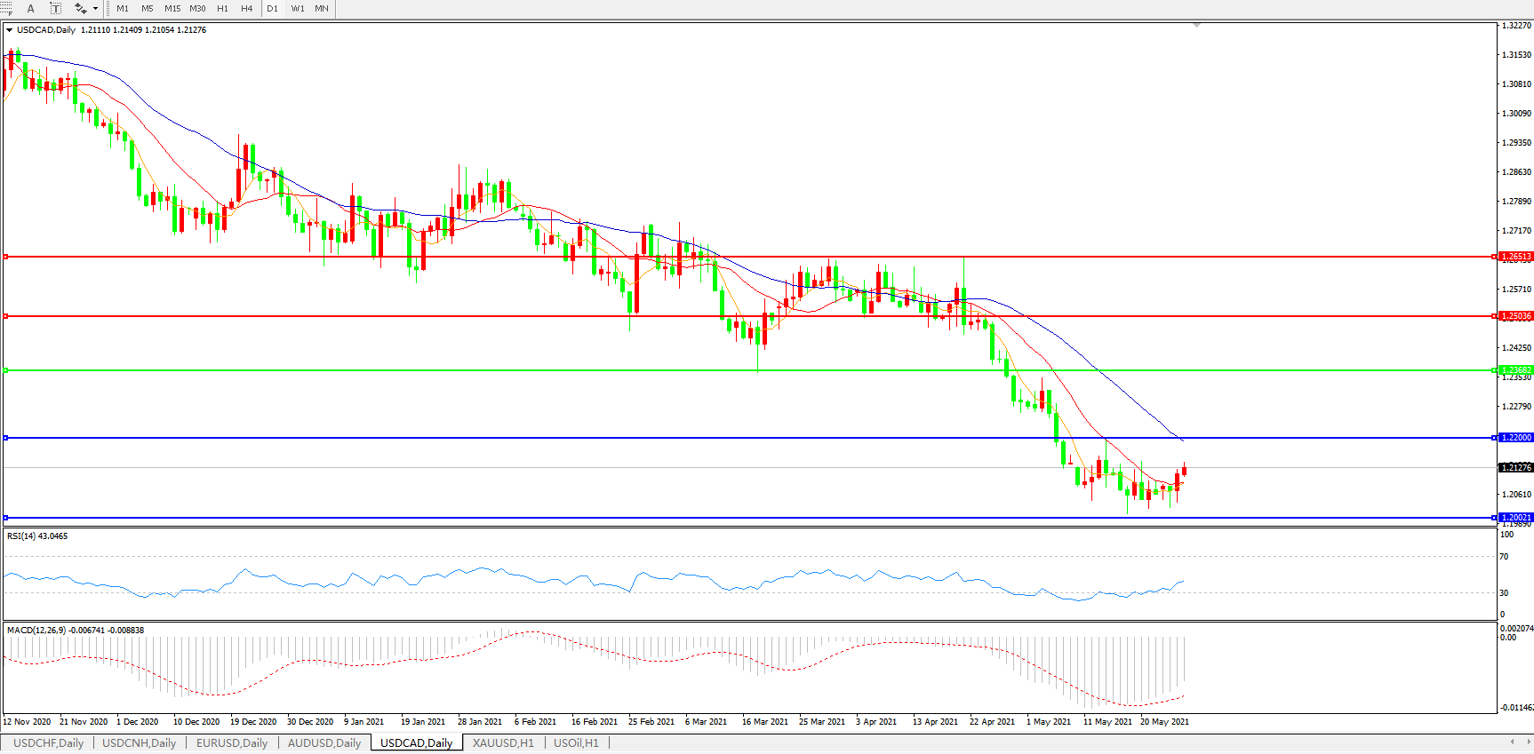 美元兑加元USDCAD 日线图: