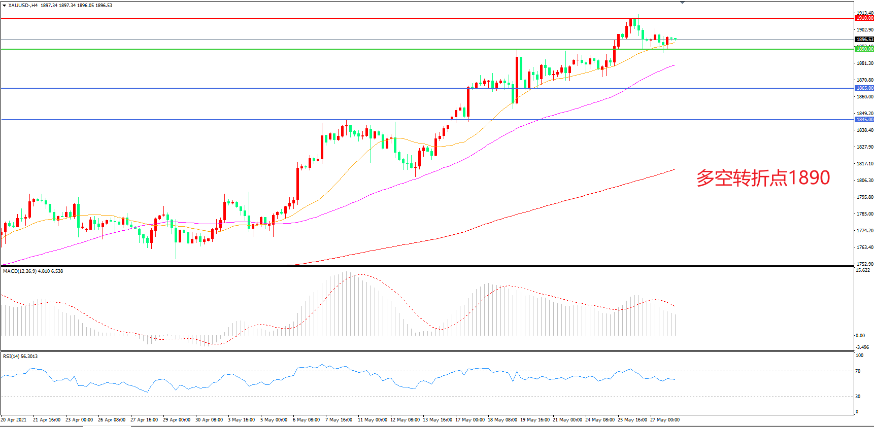 交易策略:在1890.00之上看涨,目标1910.00 1935.00
