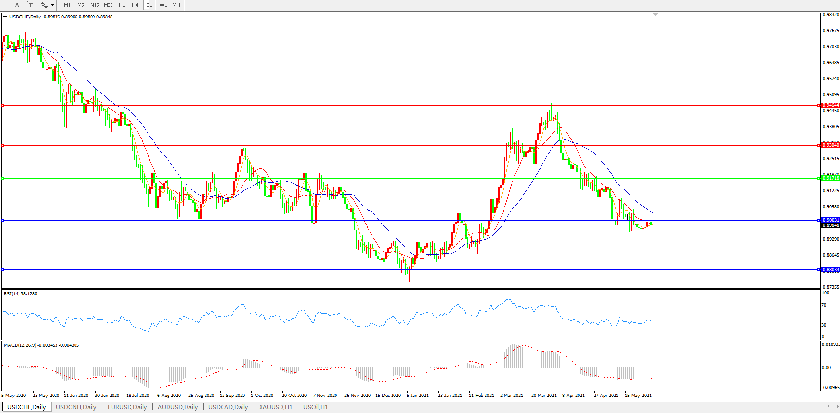 美元兑瑞郎USDCHF    日线图: