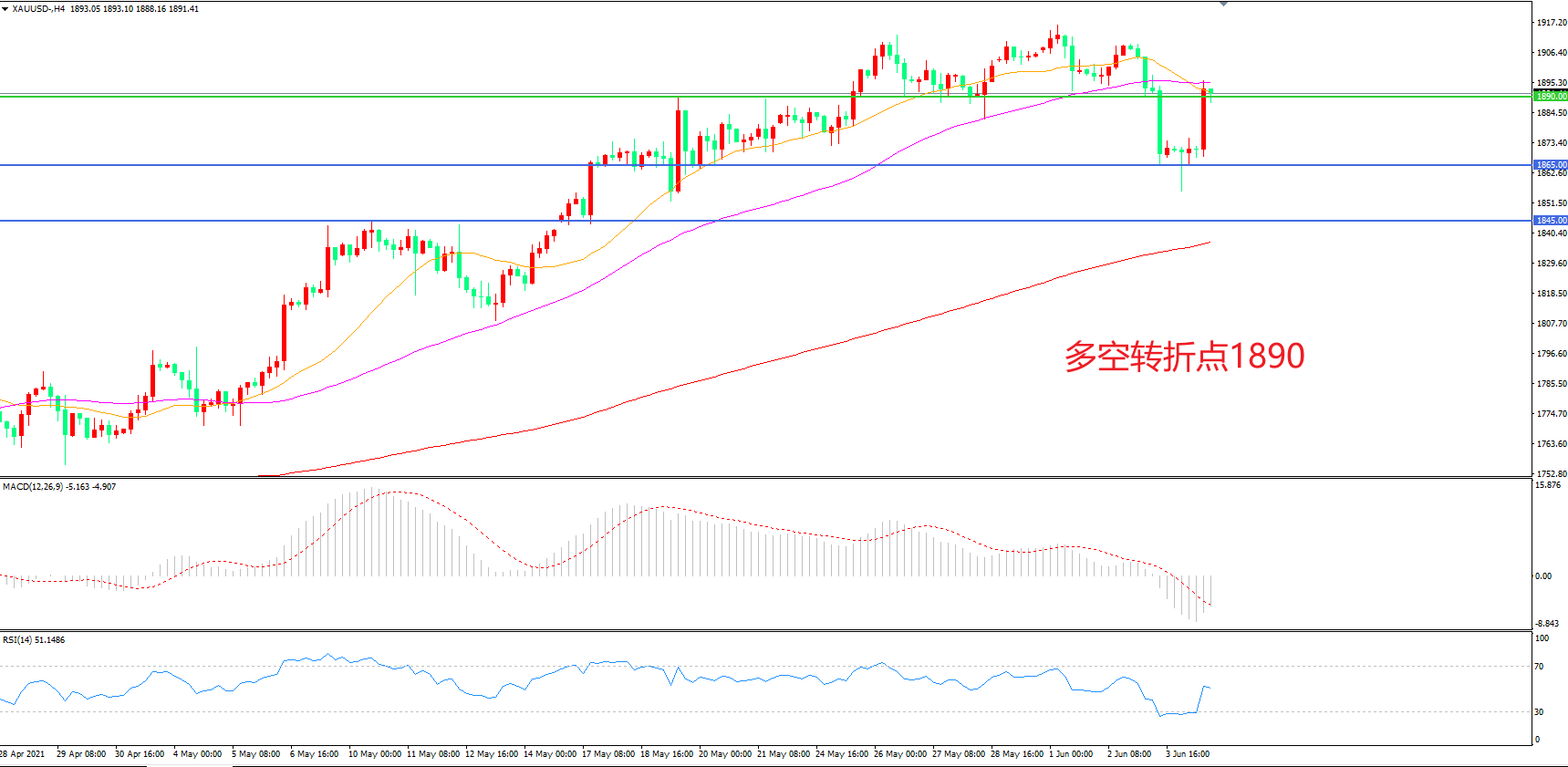多空转折点:1890.00