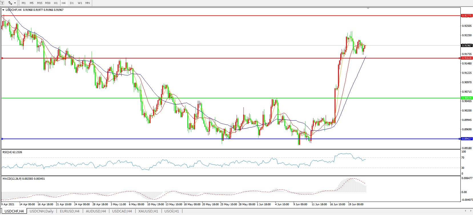 鲍威尔强调通胀暂时性,美元兑瑞郎再度上攻