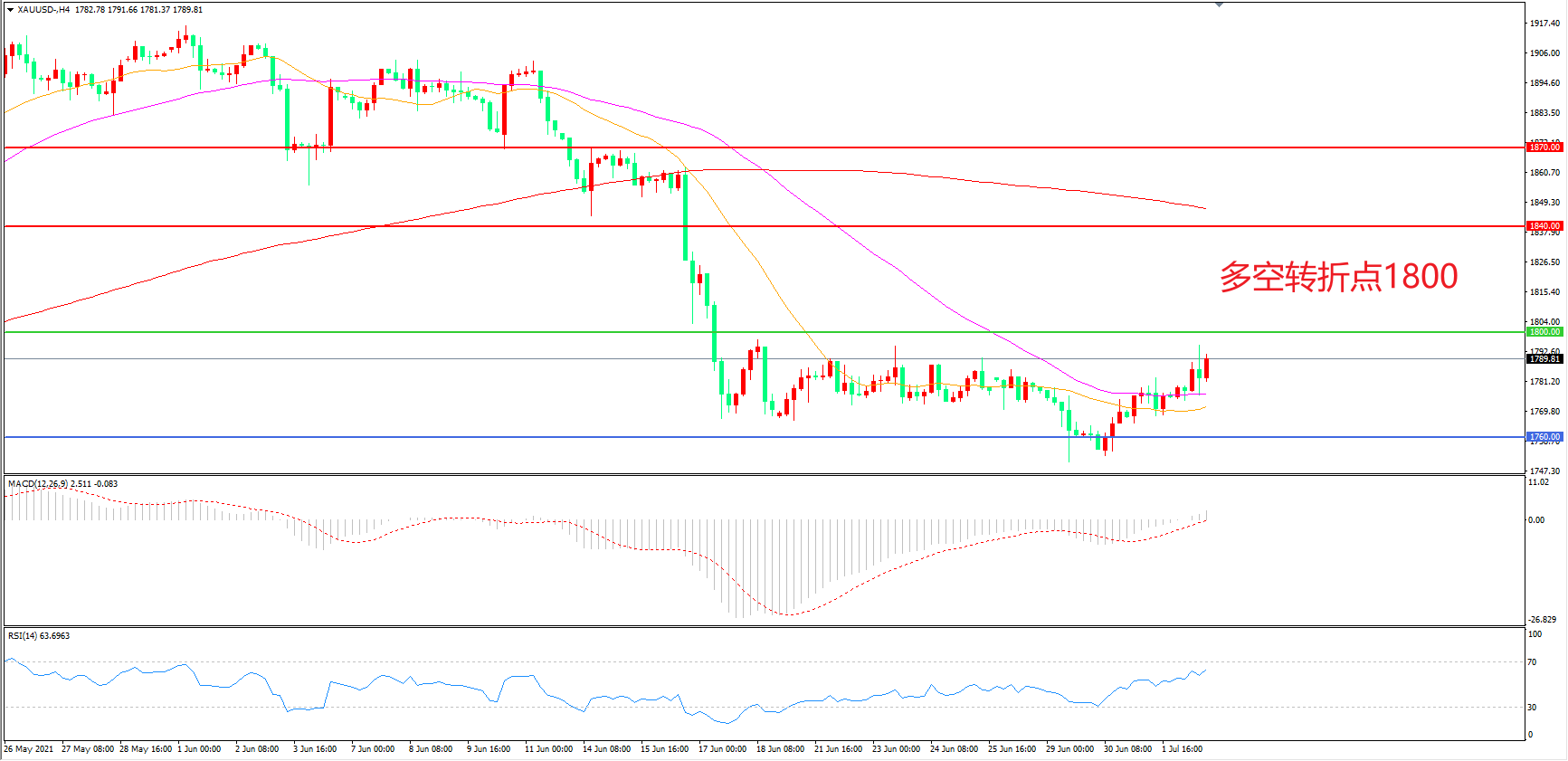 备选策略:在1800.00之上看涨,目标1840.00 1870.00