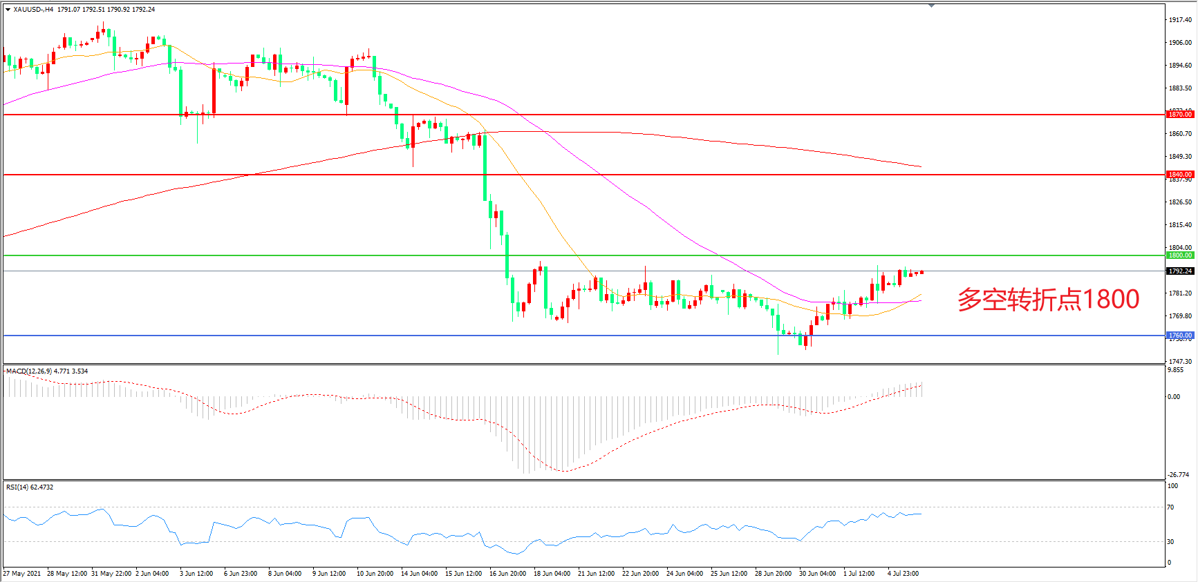 备选策略:在1800.00之上看涨,目标1840.00       1870.00