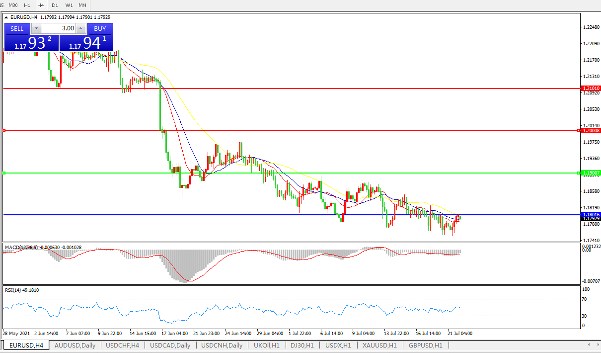 技术面简析:4小时图均线延续下行态势,汇价小幅反弹,MACD运行于0轴下但量能0轴下微缩量,RSI开始走弱,预计短期汇价大概率将进一步下行。