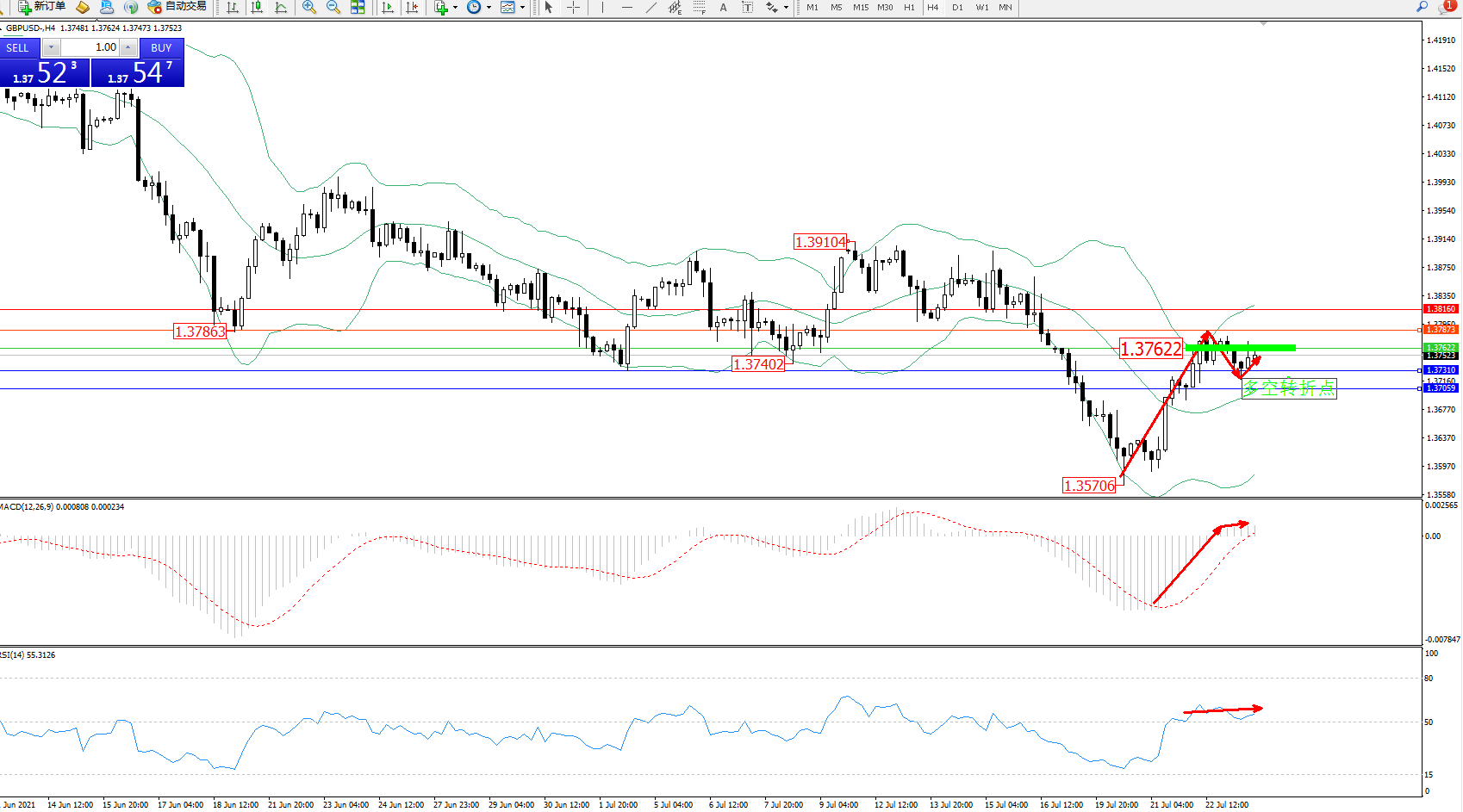 备选策略:1.37622上方看涨,目标1.37873、1.38160