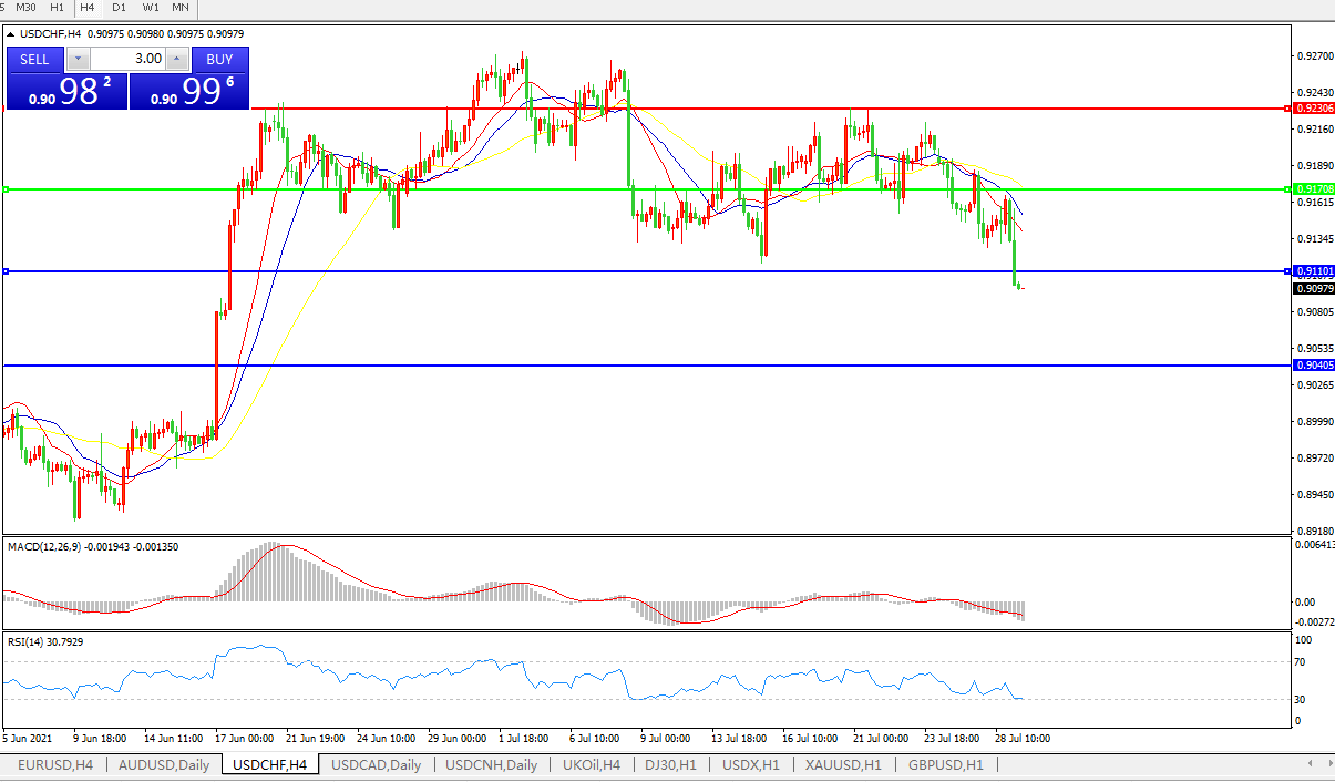 美元兑瑞郎USDCHF    4小时图: