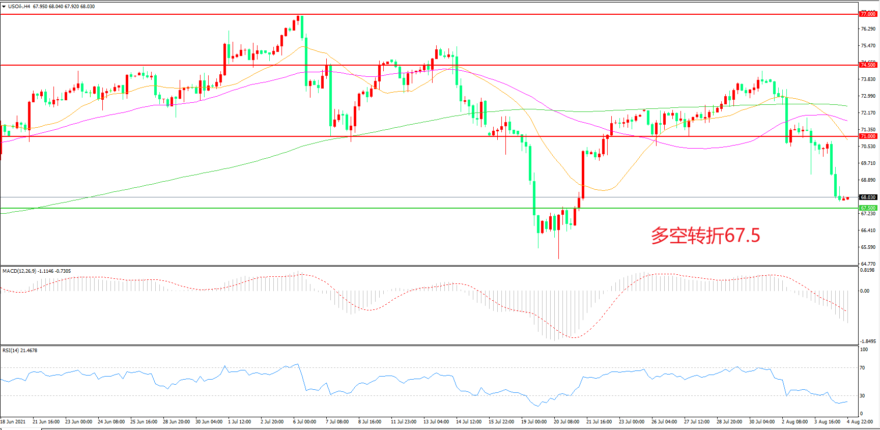 多空转折点:67.50