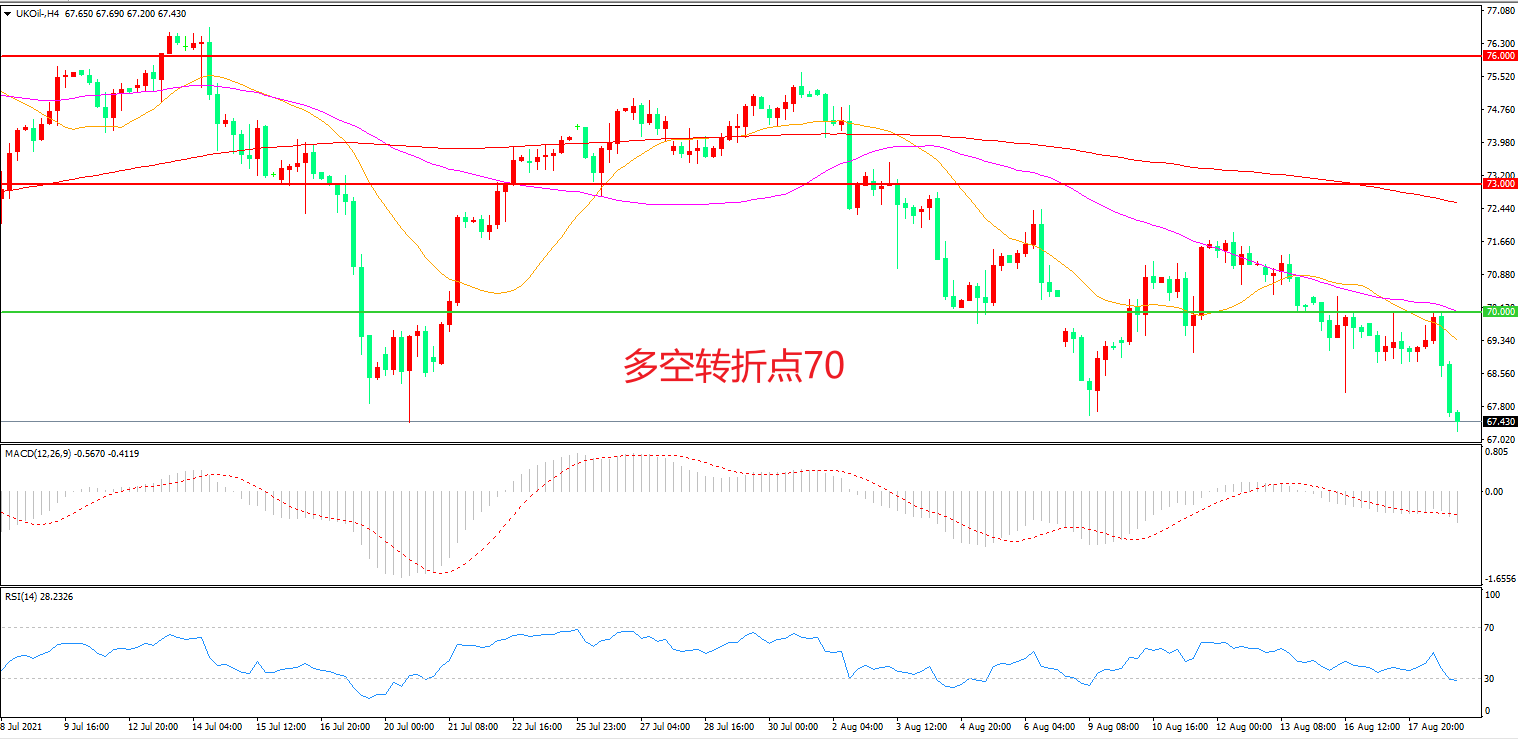 交易策略:在70.00之下看跌,目标66.50               62.00
