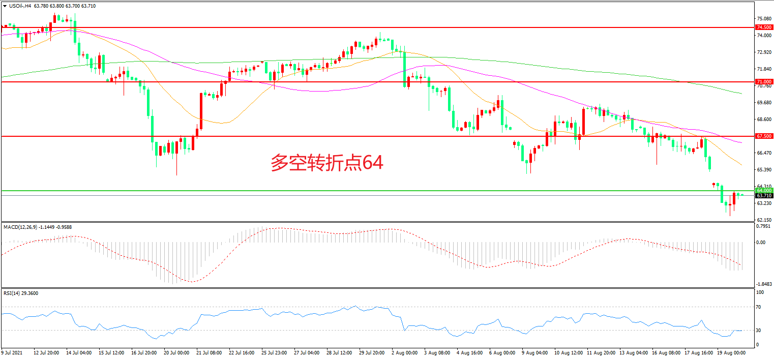 交易策略:在64.00之下看跌,目标60.00                57.00