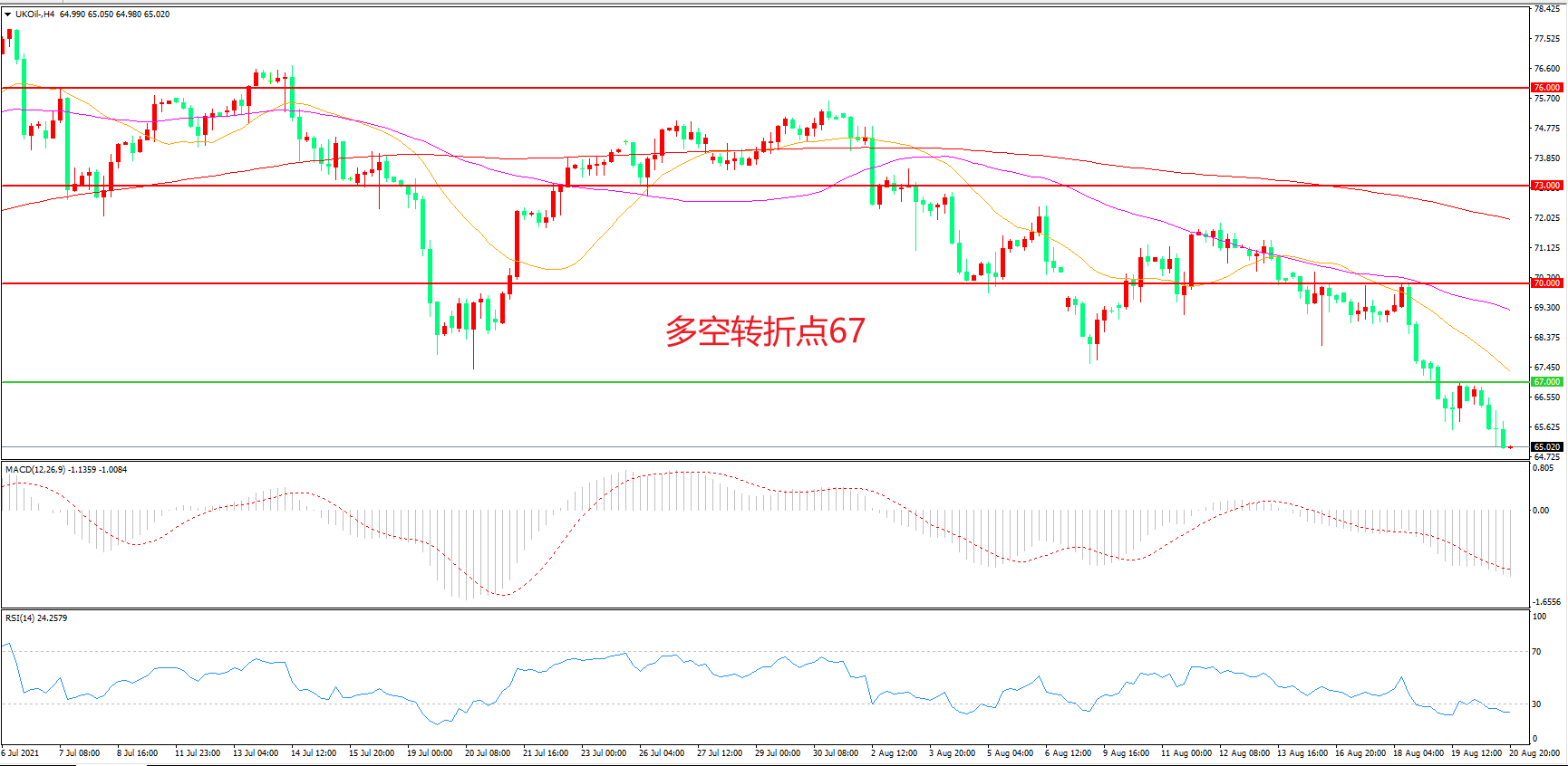 交易策略:在67.00之下看跌,目标63.00               60.00