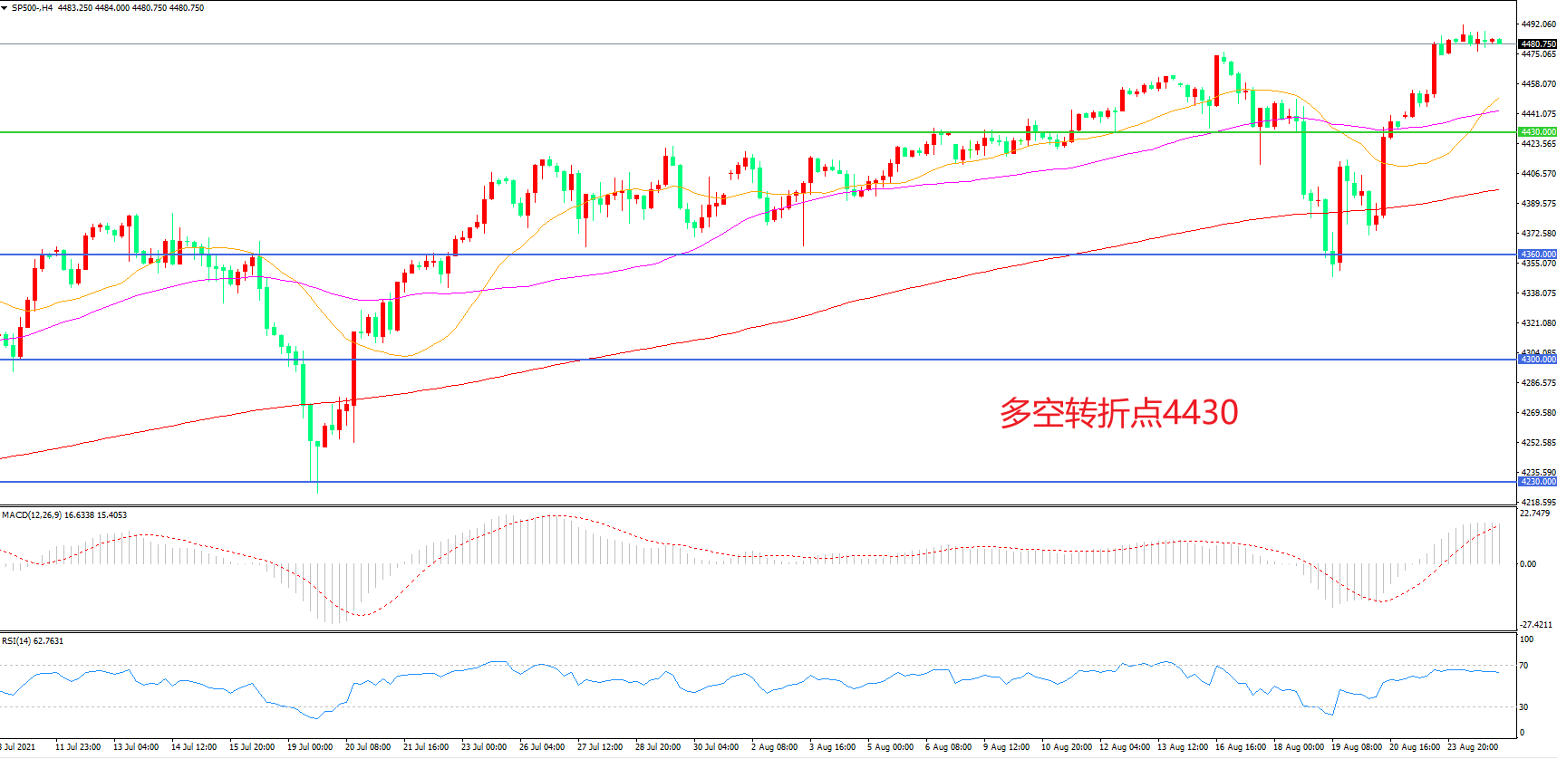多空转折点:4430.00