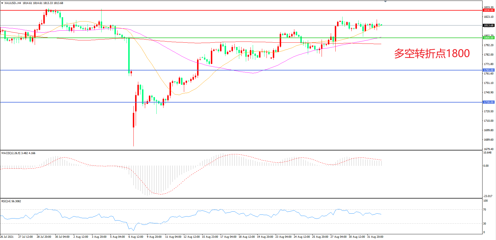 交易策略:  在1800.00之上看涨,目标1830.00       1860.00