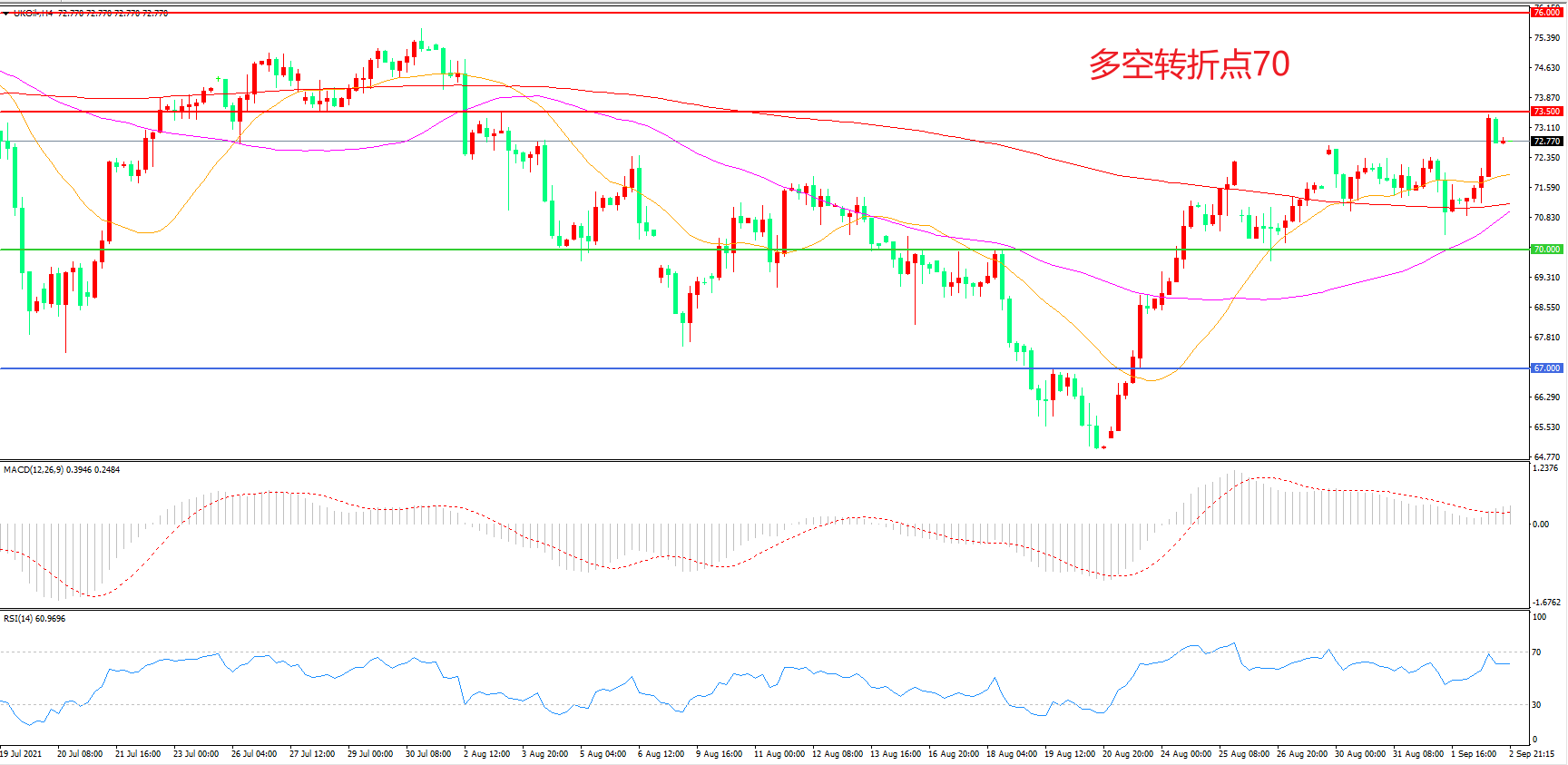 交易策略:在70.00之上看涨,目标73.50                76.00