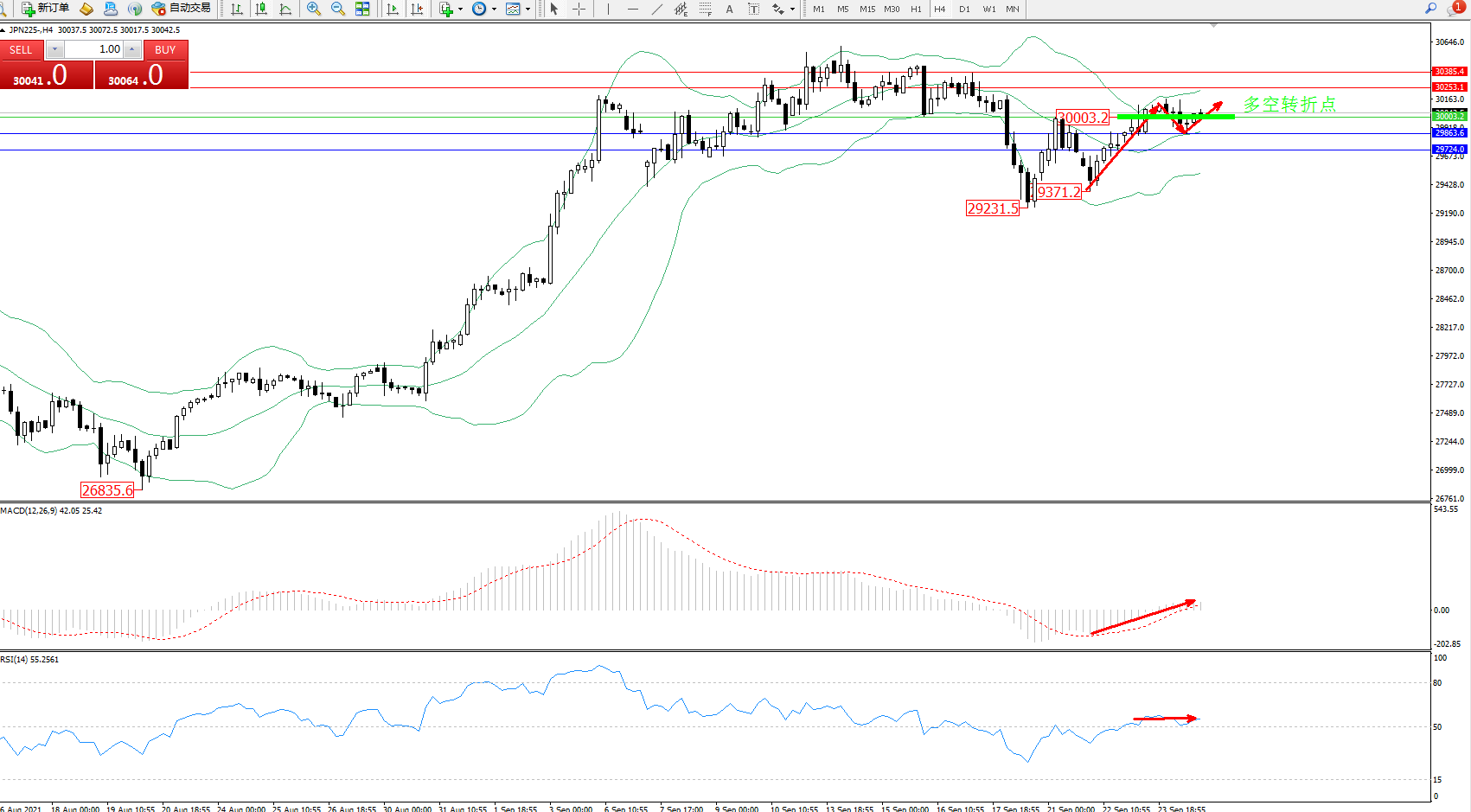 日经225指数9月24日(周五)收盘上涨632.60点,涨幅2.13%,报30272.00点。日本央行提供购买4500亿日元1-3年期日本国债,日本央行提供购买4500亿日元3-5年期日本国债;日本央行提供购买4250亿日元5-10年期日本国债;日本央行提供购买500亿日元25年期日本国债,日本今天将出售5万亿日元的国库券,将于10月1日出售5万亿日元的3个月期国债。