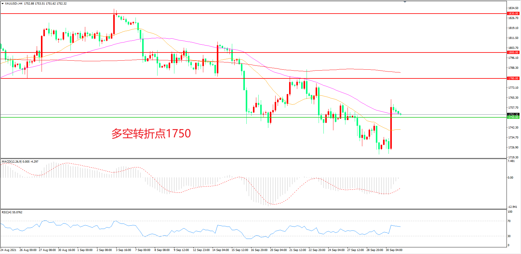 周四(9月30日),鲍威尔发言掀起“惊涛骇浪”,他在讲话中承认解决高通胀和居高不下失业率之间的“紧张关系”可能有冲突,现货黄金在3波价值12亿美元巨量资金的推动下狂飙逾40美元,收报1752.92美元/盎司。但美联储缩减购债规模的前景升温,以及美债收益率继续上升的可能性依然给黄金带来更大的下行压力,投资者应保持警惕,谨慎追多。