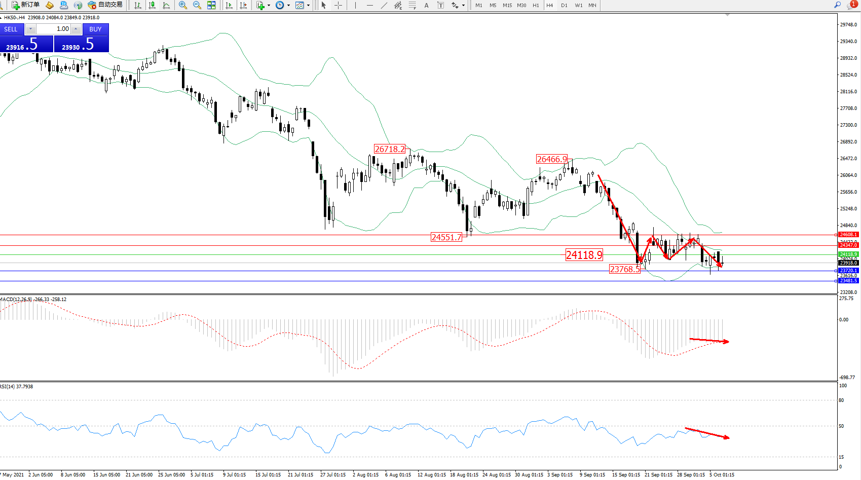 香港恒生指数10月6日(周三)收盘下跌137.66点,跌幅0.57%,报23966.49点;港股高开走低,恒指午后一度转涨,恒生科技指数跌1.5%报5866点。水务股、石油股、重型基建股逆势走强,中石油涨超4%创2019年5月以来新高;香港银行股午后拉升明显,煤炭股全线表现强势。港交所行政总裁欧冠昇表示,乐见特区政府支持拓展互联互通计划、继续完善上市机制、发展香港市场作为人民币产品交易中心,以及支持香港发展成为区内的绿色及可持续金融中心,这些都将有助于巩固香港资本市场的吸引力。港交所期待继续与特区政府及业界紧密合作,共同为香港作为全球领先的金融中心的发展而努力。