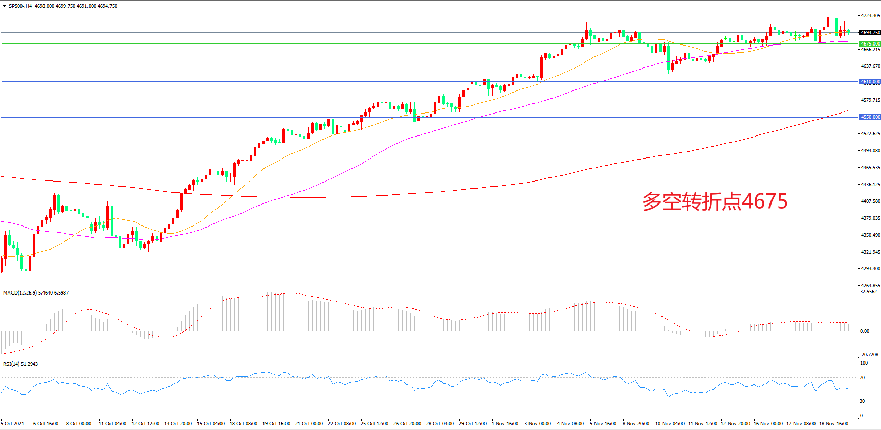 上周五(11月19日),为应对新一波疫情,奥地利重新实施封锁,德国确诊病例创疫情以来新高,故将出台更严厉措施,投资者忧虑全球经济复苏受阻,标普500小幅回落,收报4694.75点。美国众议院投票表决通过拜登的1.75万亿美元经济计划,此后,该法案将会交由参议院审议和投票,如果该法案被通过,可能会进一步提振美股走势。
