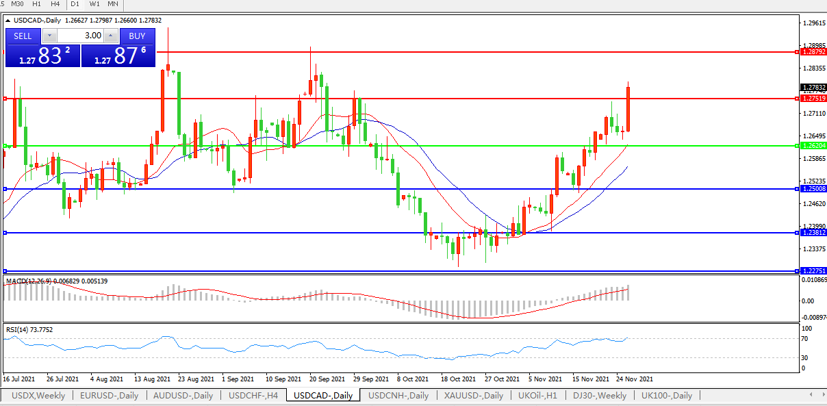 美元兑加元USDCAD 日线图: