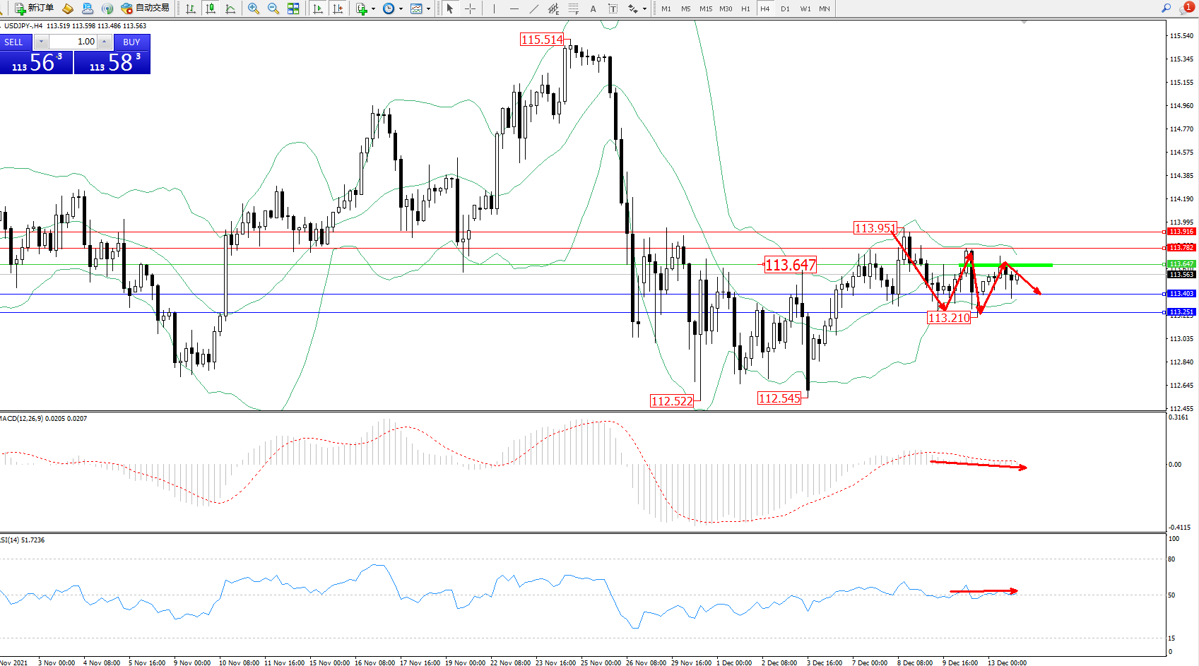 技术点评:低位多头动力延续布林带指标通道中上轨区间持续震荡上扬,高位抵达113.951位置附近遇阻开始整理回撤,纠结于布林带指标通道内持续震荡,波幅空间开始有逐渐收窄走势,布林带指标呈收口走势中,MACD指标处于0轴线上側弱势徘徊,RSI不足处于50均衡线附近持续整理平移;