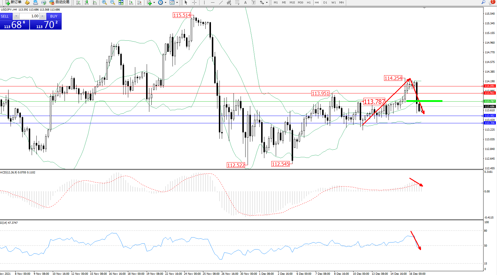 技术点评:多头动力延续布林带指标通道中上轨区间持续震荡上扬,高位抵达114.254位置附近遇阻后震荡急速下挫,纠结于布林带指标通道中下轨区间整理,短期空头动力有继续回撤迹象,布林带指标呈张口走势后开始收口,MACD指标处于多头区域维持震荡上移后反转向下移动,RSI指标处于多头区域急速下挫至50均衡线下侧整理;