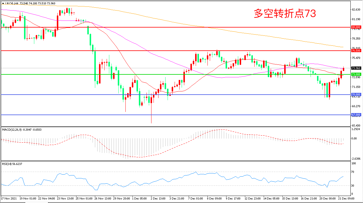 交易策略:在73.00之上看涨,目标76.50                80.00